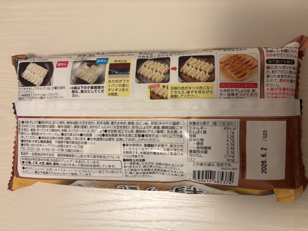 (イオントップバリュ)ギョーザ(にんにく無し)しょうがの旨み